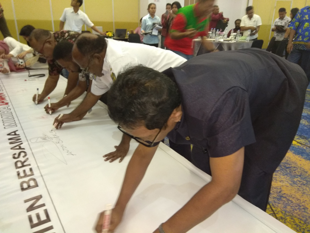 Diskusi dihadiri berbagai pihak yang jadi stakeholder pendidikan seperti Dinas Pendidikan Mimika, Bappeda Mimika, DPRD Mimika, tokoh pendidikan, tokoh masyarakat, kepala-kepala sekolah, yayasan pendidikan di Mimika, media hingga komunitas guru. Kegiatan diakhiri dengan penandatanganan komitmen bersama pengentasan buta huruf.