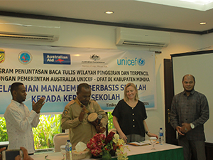 Tim Asistensi Pendidikan Kabupaten Mimika melakukan kunjungan ke sekolah sasaran program literasi penuntasan baca tulis kelas awal di wilayah pinggiran. Program ini merupakan kerjasama antara Pemerintah Kabupaten Mimika melalui Dinas Pendidikan Dasar dan Kebudayaan (Dispendasbud), United Nation Children’s Fund (Unicef), Yayasan Pembangunan Pendidikan dan Kesehatan Papua (YP2KP) dan didukung pemerintah Australia.Tim Asistensi yang ikut dalam kunjungan ini yakni Direktur YPPK Tilemans, Paul Weti, Kepala Seksi Kurikulum Paud dan SD Dispendasbud, Efraim Saria, Ketua PGRI Mimika, Frederik Hengky Letsoin, Kepala Bidang Sosbud Bappeda, Hilar H. Limbong Allo serta didampingi Direktur YP2KP, Viktor Bhato dan tim dari YP2KP.